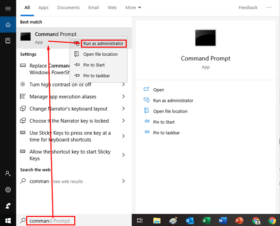 - Right-click on the Command Prompt option and choose Run as administrator.