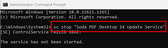 - sc stop “Soda PDF Desktop 14 Update Service“