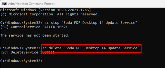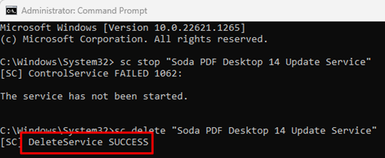 - sc delete “Soda PDF Desktop 14 Update Service“