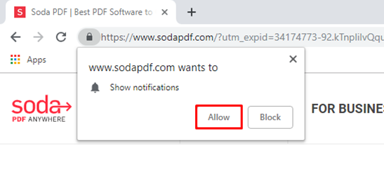 The first time you came to Soda PDF homepage you would have seen a popup requesting permission to show you notifications.