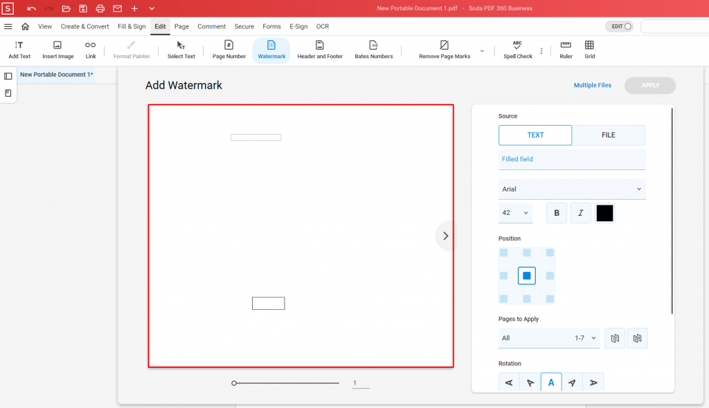 - In the Pages to Apply section, you can determine which pages you want the watermark to appear on.