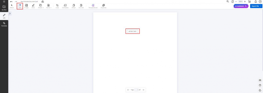 It’s time to create! Click ‘Text’ to begin your first page — a simple-page document featuring a title.
