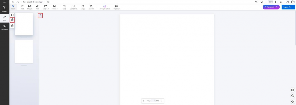 To attach more pages to your document, click > on the left panel and then select Duplicate to add more pages to your project.