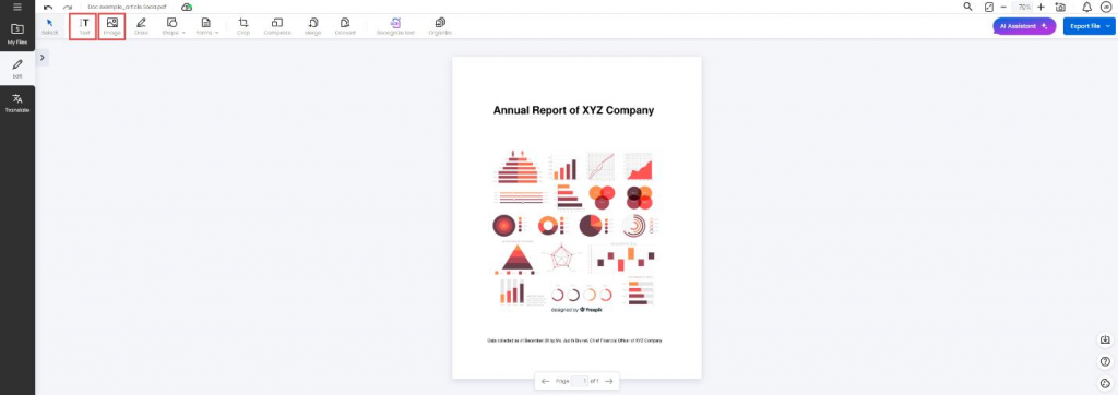 Voilà! You now have a page presentation for your PDF document. In this application, you can use several tools to edit and manage your files. Whether you want to edit a text or convert files in different formats, each functionality is conceived to make your experience easier.