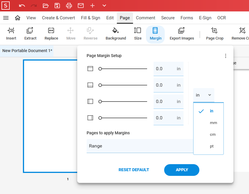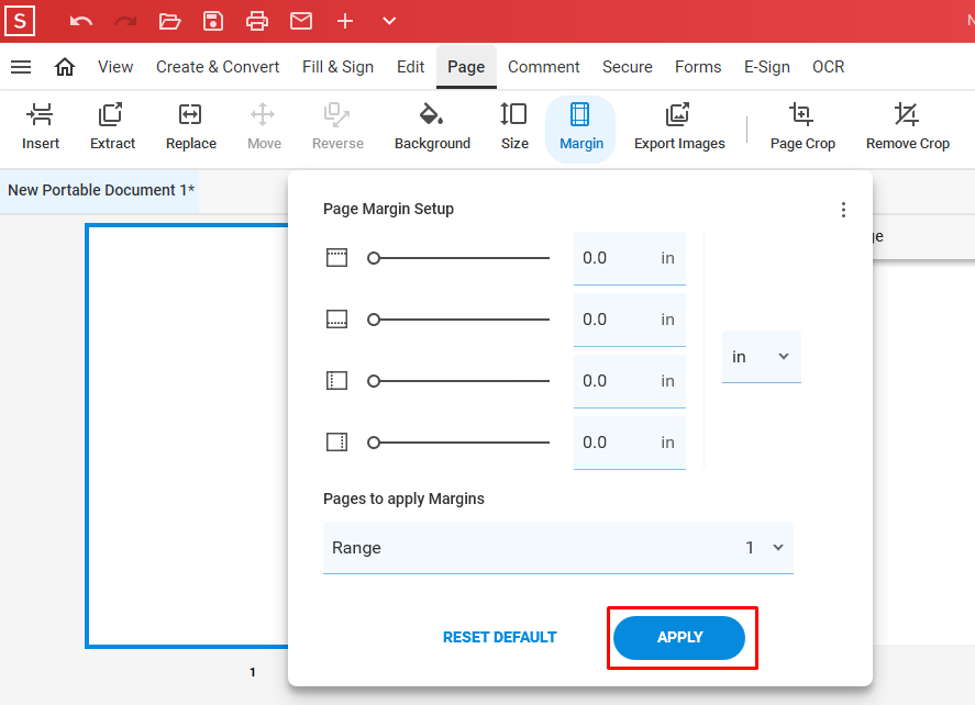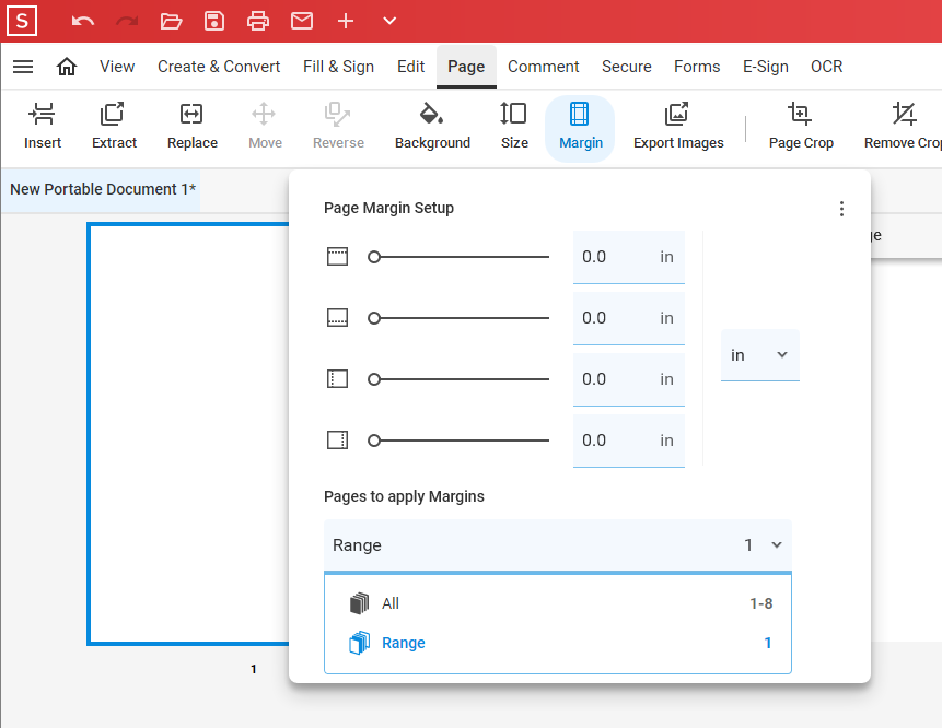 - Range – With this option you can choose any combination of pages to modify the margin size. Below you’ll see how to tell Soda PDF the pages it needs to work with.