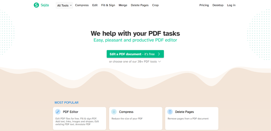 Sejda is a good option for small businesses and freelancers. Thanks to its flexibility, the platform’s strength lies in its dual approach: work online when you’re mobile and switch to desktop for heavy lifting. Your choice, your workflow.