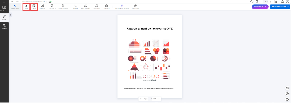 N’hésitez pas à compléter votre page comme vous l’aviez imaginé en ajoutant du texte > Texte. Pour ajouter une image, cliquez sur Image, et téléchargez le graphique, la photo ou l’image souhaitée ou faites Glisser-déposer votre image.