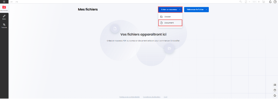 Choisissez le type de document que vous souhaitez créer en cliquant sur Créer un nouveau > Document.