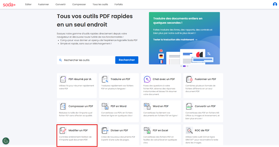 Ouvrez les outils Soda PDF en ligne et sélectionnez Modifier un PDFdans le menu principal.