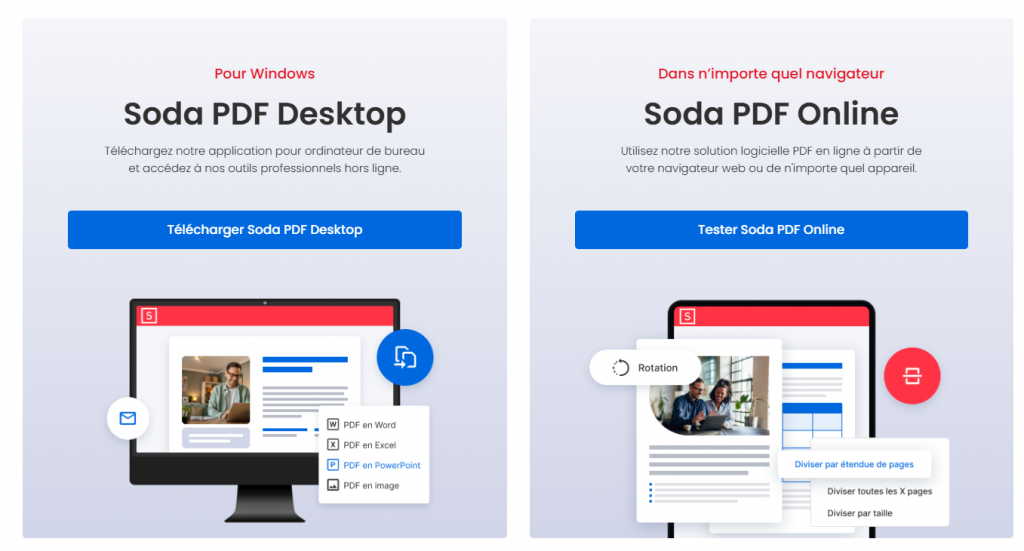Expérimenter nos services gratuitement* vous permet de constater la rapidité et la fiabilité des résultats obtenus avec Soda PDF et de comprendre à quel point nos outils sont faciles à utiliser. C’est un peu beaucoup notre façon de vous montrer ce dont on est capable !
